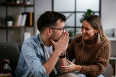 Młoda para siedzi i rozmawia w domu. Kochająca się para na randce.