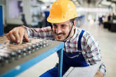 Pracownik fabryki z planem pracy nad nowym projektem
