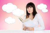 piękna dziewczyna studiuje siedzi przy stole z książek i PC