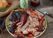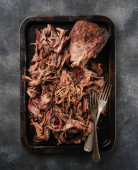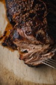 Kawałek wieprzowiny potarty masażem i ugotowany na grillu, aby zrobić ciągniętą wieprzowinę.