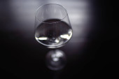 szklanka szklana z szampanem na kolorowym tle