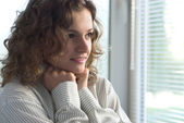 portret myślenia atrakcyjna dziewczyna z kręconymi włosami