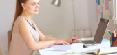 młody atrakcyjny biznes dama kopiowanie danych na papierze