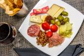 Włoski Charcuterie pokładzie z serem krakersy i salami serwowane na drewnianej desce z surowej krawędzi kory