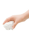 kobieta ucha ciekawski się od biały papier rozdarty