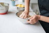 Kobieta przygotowuje tradycyjne ravioli, kładąc mięso do ciasta