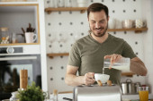 młody piękny mężczyzna korzystających jego świeże śniadanie rano