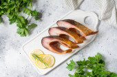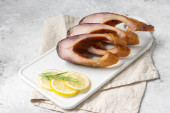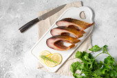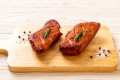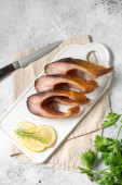 Zdjęcie " Gotowane wędzone żeberka wieprzowe w czarnej patelni żeliwnej na jasnoszarym stole kuchennym. Smażone żeberka wieprzowe" może być wykorzystywane do celów osobistych i komercyjnych zgodnie z warunkami zakupionej licencji Royalty-free. Obraz jest dostępny do pobrania w jakości wysokiej rozdzielczości do 5760x3840.
