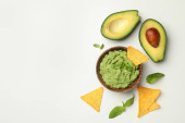 Koncepcja smacznego jedzenia z miską guacamole na tle mięty