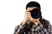 Zdjęcie "młody mężczyzna fotografa w studio, na białym tle" może być wykorzystywane do celów osobistych i komercyjnych zgodnie z warunkami zakupionej licencji Royalty-free. Obraz jest dostępny do pobrania w jakości wysokiej rozdzielczości do 5760x3840.