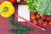 sztućce związany z pomiaru taśmę i książki z warzywami na białym tle