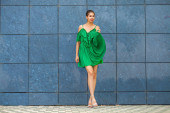 Zdjęcie "Młoda piękna brunetka kobieta w zielonej sukience" może być wykorzystywane do celów osobistych i komercyjnych zgodnie z warunkami zakupionej licencji Royalty-free. Obraz jest dostępny do pobrania w jakości wysokiej rozdzielczości do 5760x3840.