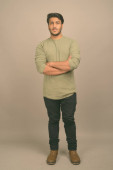 młody przystojny perski nastolatek chłopiec na szary tło