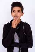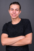młody przystojny perski nastolatek chłopiec na szary tło