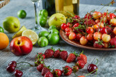 Zdjęcie "Dwie butelki i kieliszek wina na marmurowym stole ze świeżymi owocami." może być wykorzystywane do celów osobistych i komercyjnych zgodnie z warunkami zakupionej licencji Royalty-free. Obraz jest dostępny do pobrania w jakości wysokiej rozdzielczości do 5760x3840.