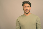 młody przystojny perski nastolatek chłopiec na szary tło