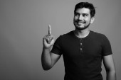 młody przystojny perski nastolatek chłopiec na szary tło