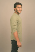 młody przystojny perski nastolatek chłopiec na szary tło