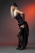fille blonde pose topless dans le chapeau de fourrure