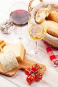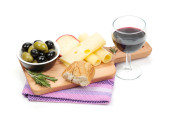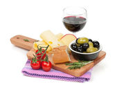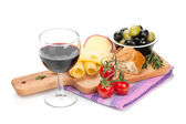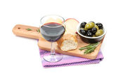 czerwone wino z sera, chleba, oliwki i przyprawy