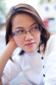 azjatyckich kobiet czarna koszula. miała na sobie kapelusz