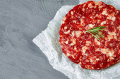 Surowy turecki tradycyjny kebab mięsny na stole.