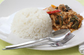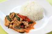 Zdjęcie "panang curry z kurczaka z ryżem" może być wykorzystywane do celów osobistych i komercyjnych zgodnie z warunkami zakupionej licencji Royalty-free. Obraz jest dostępny do pobrania w jakości wysokiej rozdzielczości do 5760x3840.