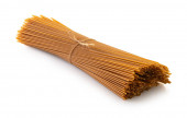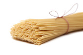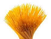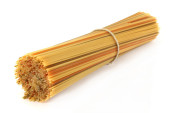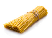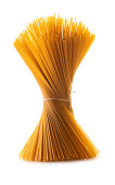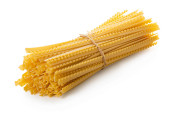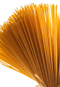 surowe spaghetti zbliżenie na białym pojedynczym tle