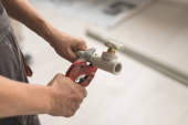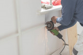 Zdjęcie "Facet przecina rurę iskrami szlifierki. Widok boczny procesu pracy z szlifierką" może być wykorzystywane do celów osobistych i komercyjnych zgodnie z warunkami zakupionej licencji Royalty-free. Obraz jest dostępny do pobrania w jakości wysokiej rozdzielczości do 5760x3840.