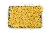 makaron surowy na białym, izolowanym tle z plastrem