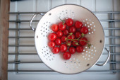 Zdjęcie "Świeże smaczne pomidory wiśniowe w kolandrze. Warzywa, kuchnia, dom" może być wykorzystywane do celów osobistych i komercyjnych zgodnie z warunkami zakupionej licencji Royalty-free. Obraz jest dostępny do pobrania w jakości wysokiej rozdzielczości do 5760x3840.