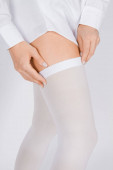 Zdjęcie "Czarny body na białym tle. Bielizna kompresyjna. Ortopedyczne poporodowe gacie z bandażem. Poporodowy plaster brzucha. Kobieta kształtująca ciało. Spodnie pooperacyjne" może być wykorzystywane do celów osobistych i komercyjnych zgodnie z warunkami zakupionej licencji Royalty-free. Obraz jest dostępny do pobrania w jakości wysokiej rozdzielczości do 5760x3840.