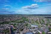 Zdjęcie "Zdjęcie lotnicze centrum Rothwell w Leeds West Yorkshire w Wielkiej Brytanii pokazujące typowe brytyjskie osiedla mieszkaniowe i obszary podmiejskie w słoneczny letni dzień" może być wykorzystywane do celów osobistych i komercyjnych zgodnie z warunkami zakupionej licencji Royalty-free. Obraz jest dostępny do pobrania w jakości wysokiej rozdzielczości do 5760x3840.
