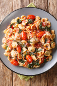 lumakoni makaron nadziewane grzybami, szpinaku i sera zbliżenie