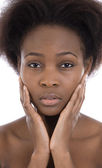 na białym tle portret młodego uśmiechający się african american kobieta.