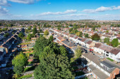 Zdjęcie "Zdjęcie lotnicze miasta Worthing, dużego nadmorskiego miasteczka w Anglii i dzielnicy o statusie gminy w West Sussex, Anglia, pokazujące typowe osiedla mieszkaniowe i firmy w słoneczny dzień" może być wykorzystywane do celów osobistych i komercyjnych zgodnie z warunkami zakupionej licencji Royalty-free. Obraz jest dostępny do pobrania w jakości wysokiej rozdzielczości do 5760x3840.