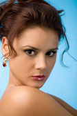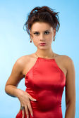 kobieta w niebieskiej sukience