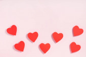 Koncepcja na Walentynki 14 lutego. Czerwone Walentynki serca karty na różowym tle
