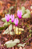 Zdjęcie "Dziki cyklamen hederifolium w lesie ." może być wykorzystywane do celów osobistych i komercyjnych zgodnie z warunkami zakupionej licencji Royalty-free. Obraz jest dostępny do pobrania w jakości wysokiej rozdzielczości do 5760x3840.