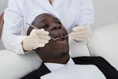 człowiek przechodzi badania stomatologiczne w klinice