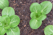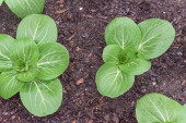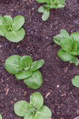 Zdjęcie "Zbliżenie duży głowa bok choy roślina z woda krople rośnie na ciemnej ziemi kompost w ogrodzie podwórkowym w pobliżu Dallas, Teksas, Ameryka. Homegrown organicznych zieleni liściastych ogród." może być wykorzystywane do celów osobistych i komercyjnych zgodnie z warunkami zakupionej licencji Royalty-free. Obraz jest dostępny do pobrania w jakości wysokiej rozdzielczości do 5760x3840.