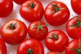 czerwone pomidory, ułożone na stoisku rynku