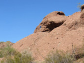 Widok z kanionu Echo Camelback Mountain szlak turystyczny z zadaszonym, zacienionym obszarze z nowoczesną architekturą znajduje się w Phoenix, Arizona