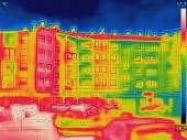 Obraz termowizyjny na podczerwień pokazujący brak izolacji cieplnej w domu