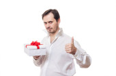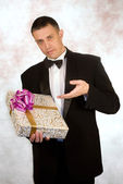 człowiek daje prezent