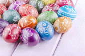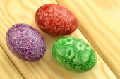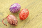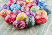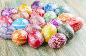 piękny porysowany ręcznie pisanki na drewnianym stołem