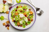 Świeża sałatka z jagodami, mandarynkami, marchewką i orzechami włoskimi.