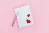 Zdjęcie "Notatnik z pustą kartką i czerwonym sercem na różowym tle z brokatem. Leżeć płasko. Miejsce na tekst. " może być wykorzystywane do celów osobistych i komercyjnych zgodnie z warunkami zakupionej licencji Royalty-free. Obraz jest dostępny do pobrania w jakości wysokiej rozdzielczości do 5760x3840.