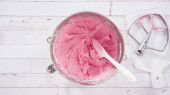 Przygotowanie kremu z serem malinowym w mikserze kuchennym do pieczenia czekoladowych babeczek malinowych.