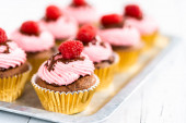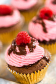 Zdjęcie "Lukier czekoladowy babeczki z kremem malinowym ser maślany." może być wykorzystywane do celów osobistych i komercyjnych zgodnie z warunkami zakupionej licencji Royalty-free. Obraz jest dostępny do pobrania w jakości wysokiej rozdzielczości do 5760x3840.